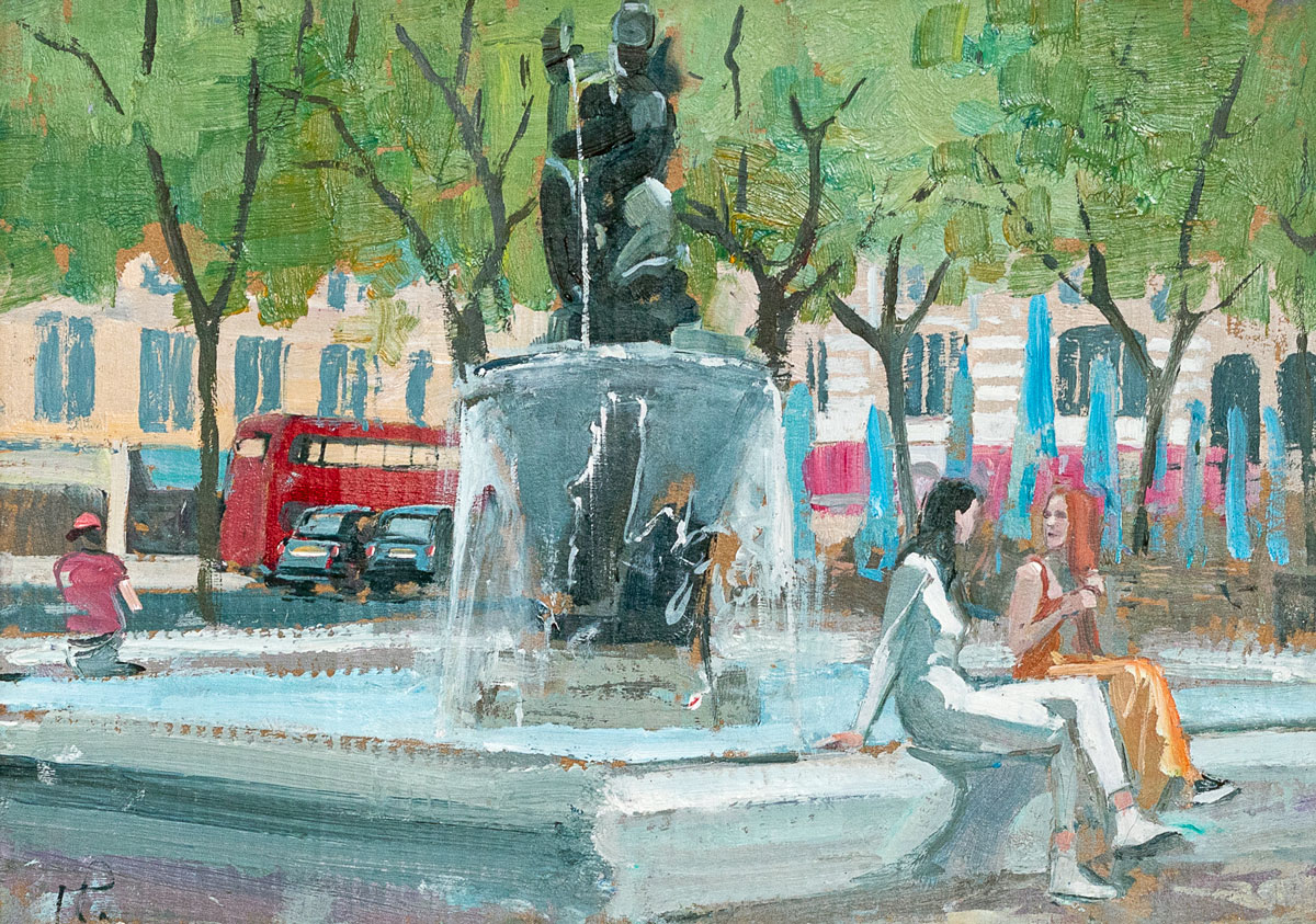 These paintings of city landscapes and bar interiors are a celebration of urban life, primarily of London but including other cities around the world. They focus on how people share space in their surroundings, whether this is outside in the street or in an interior environment.